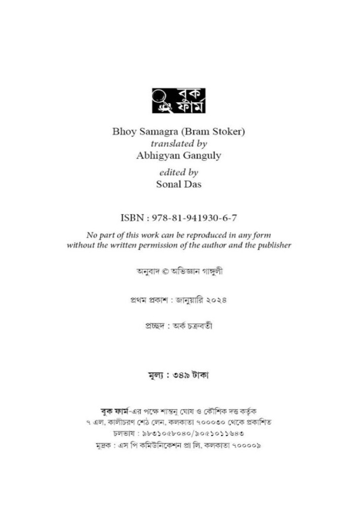 ়ের গল্প। ‘ভয় সমগ্র’-তে সংকলিত হল ব্রাম স্টোকারের সেইরকমই সেরা তেরোটা ভয়ের গল্প এবং একটি উপন্যাসিকা। প্রতিটি গল্পের শেষে দেওয়া হল প্রয়োজনীয় টীকা ও সংক্ষিপ্ত ইতিহাস। প্রসঙ্গক্রমে ‘ড্রাকুলা’ উপন্যাসটি সর্বজনাগত ও বহুপঠিত হওয়ায় এই খণ্ডে অর্ন্তভুক্ত করা হয়নি।