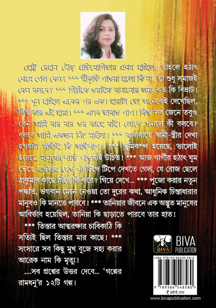ল, কিন্তু কার এই ছায়া! * এসব ভাবাও পাপ।কিন্তু সব জেনে তবুও কেন আমি বার বার ওর কাছে যাই।লোকে শুনলে কি বলবে? বলবে আমি একজন নিচ মহিলা। * কালরাতে স্বামী স্ত্রীর দেখা হওয়াটা সত্যিই কি অভিশাপ! * ভূমিকম্প হয়েছে,ভালোই হয়েছে,মানুষের শাস্তি পাওয়াই উচিত! * আজ গার্গীর হঠাৎ ঘুম ভেঙে যাওয়ায়, সেও পা টিপে টিপে দেখতে গেল, যে রোজ ছেলে ঠাকুমার কাছে গিয়ে কি করে? গিয়ে দেখে... * পূজো করার নতুন পদ্ধতি, ভগবান মেনে নেওয়া তো দূরের কথা, আধুনিক চিন্তাধারার মানুষও কি মানতে পারবে! * তানিয়ার জীবনে এক অদ্ভুত মানুষের আবির্ভাব হয়েছিল,তানিয়া কি ছাড়াতে পারবে তার হাত! * তিস্তার আত্মরক্ষার চাবিকাঠি কি, সত্যিই ছিল তিস্তার মার কাছে! * সংসারে সব কিছু মুখবুজে সহ্য করার আরেক নাম কি মৃত্যু!... সব প্রশ্নের উত্তর দেবে... গল্পের রামধনুর ১২ টি গল্প।