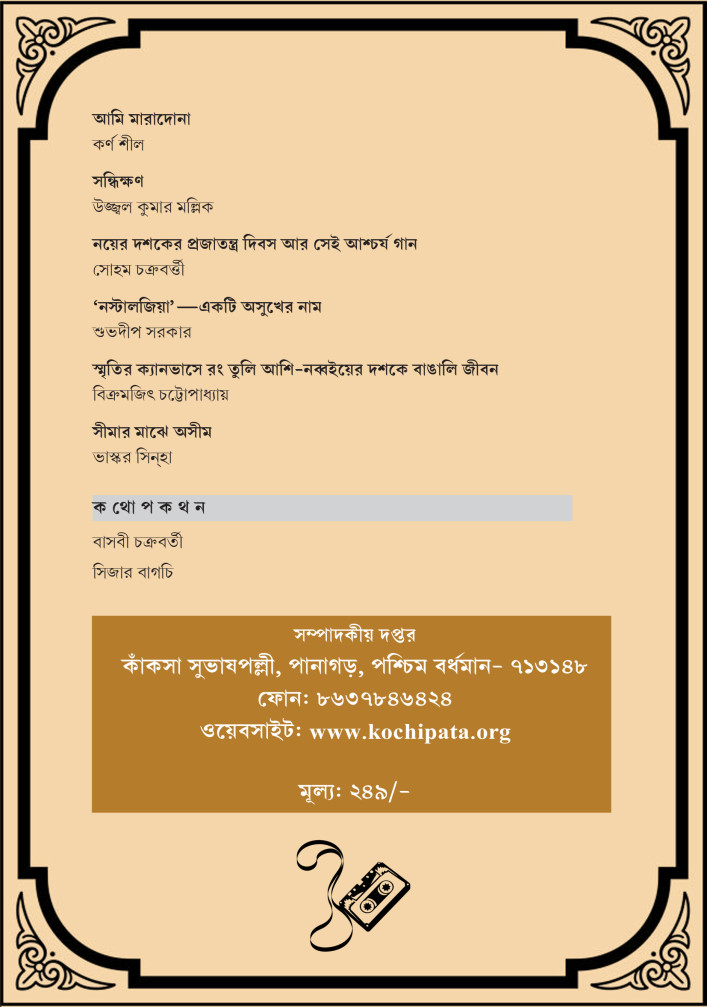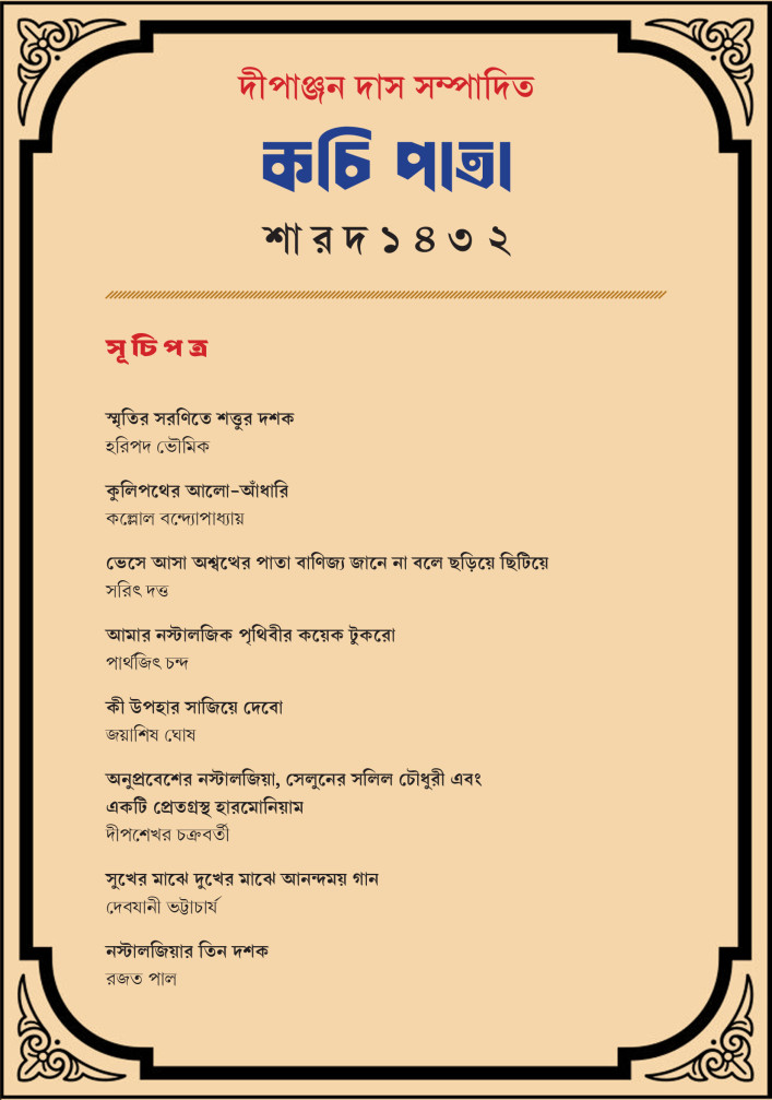 ‘কচি পাতা’ নিবেদিত ‘শারদ ১৪৩২’-এ সেই ভাবনার ছোঁয়া পাবেন বলেই মনে হয়। আমাদের এবারের বিষয় নস্টালজিয়ার তিন দশক, সত্তর থেকে নব্বই।