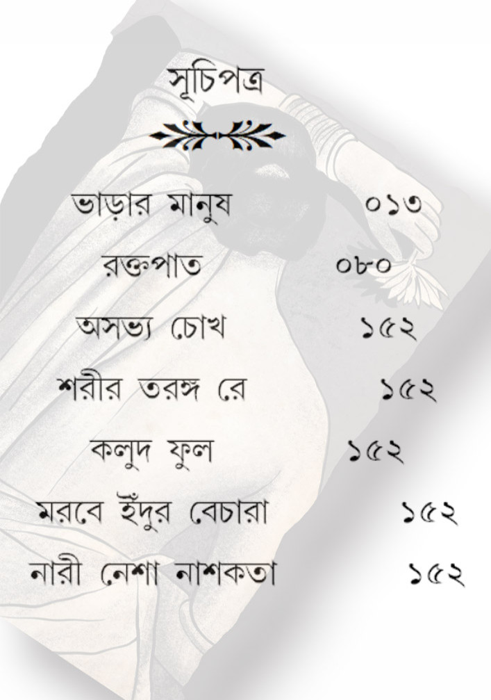 এই বইয়ের আমার সব গল্পের বিষয়ই যৌনতা। যে যৌনতা নেশা ধরায়, যে যৌনতা নাশকতায় ইন্ধন দেয়। নিজেকে বা অপরকে ধ্বংস করে। তছনছ করে। ফিরে দেখে, ক্ষুব্ধ ও ক্রুদ্ধ করে।