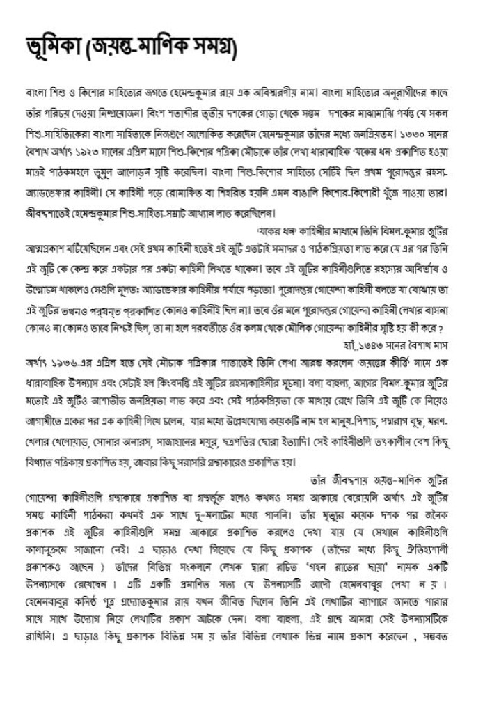 র কাহিনি চুম্বকের মতো আকর্ষণ করল সব বয়সের পাঠকদের যার স্রষ্টা হেমেন্দ্রকুমার রায় (১৮৮৮-১৯৬৩)। যাঁর খ্যাতি মূলত শিশু সাহিত্যিক রূপে হলেও তাঁর প্রতিভার ক্ষেত্র ছিল বহুধাবিস্তৃত। সে যুগে বাংলা থিয়েটার ও গ্রামোফোন রেকর্ডে গাওয়া গানের প্রচলিত রীতি ও রুচির মোড় তিনি ঘুরিয়ে দিয়েছিলেন। চিত্রশিল্পী হওয়ার সুবাদে ‘বাংলা শিল্প’ ও ‘মঞ্চাভিনয়ে’র সমালোচনা সাহিত্যের অগ্রদূত, সেইসঙ্গে অজস্র গল্প, উপন্যাস, কবিতা, অনুবাদ, স্মৃতিচারণা ও প্রবন্ধের রূপকার ও সম্পাদনায় দক্ষতা। বিশেষত বাংলার শিশু-কিশোর সাহিত্যকে অ্যাডভেঞ্চার ও গোয়েন্দা কাহিনির স্বাদ পাইয়ে দেওয়ার জন্য তাঁর কৃতিত্ব অনস্বীকার্য। এ প্রসঙ্গে তাঁর অসামান্য দক্ষতা প্রতিভাত হয়েছে ঐতিহাসিক গল্প ও রচনায় এবং অনিবার্যভাবেই তাঁর কলমের ভৌতিক ও আতঙ্ক কাহিনি আর এক রোমাঞ্চ পর্বের সুচনা করে। তাঁর সৃষ্ট অভিযান কাহিনির নায়ক বিমল কুমার এবং অপরাধ কাহিনির নায়ক জয়ন্ত-মানিক প্রায় আট দশক ধরে পাঠকদের পরিচিতির বৃত্তে অবস্থান করেছে।
