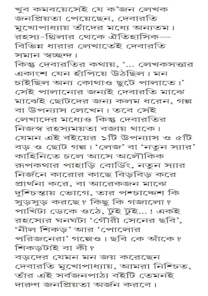 বড়দের যেমন মন জয় করেছেন দেবারতি মুখোপাধ্যায়, আমরা নিশ্চিত, তাঁর এই সর্বজনপাঠ্য বইটি তেমনই দারুণ জনপ্রিয়তা অর্জন করবে।