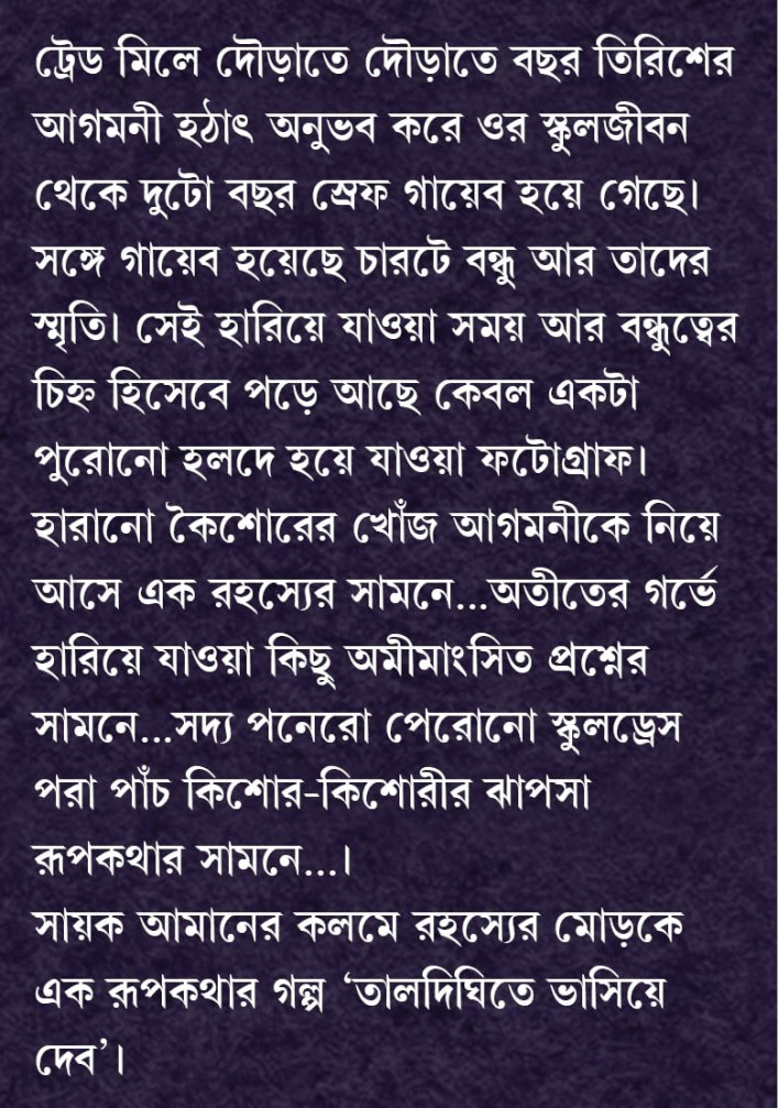 সায়ক আমানের কলমে রহস্যের মোড়কে এক রূপকথার গল্প ‘তালদিঘিতে ভাসিয়ে দেব’।